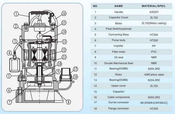 | Vật liệu cấu tạo | Thân bơm: Inox Buồng bơm: Gang Quận dây quấn 100% đồng chất lượng cao |